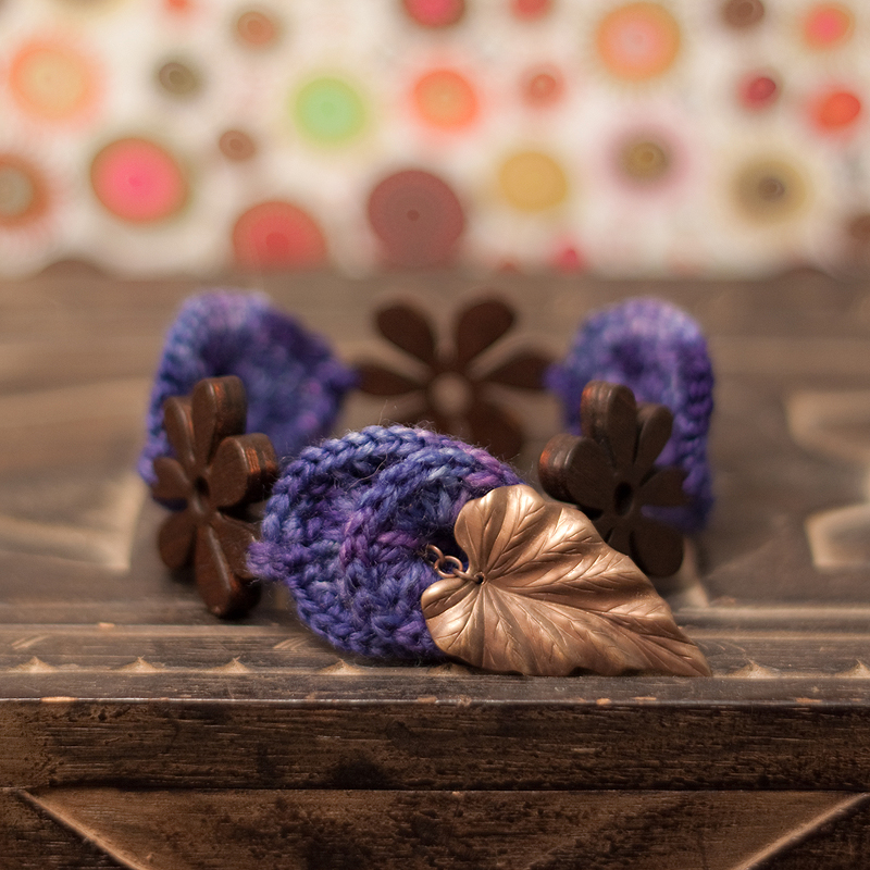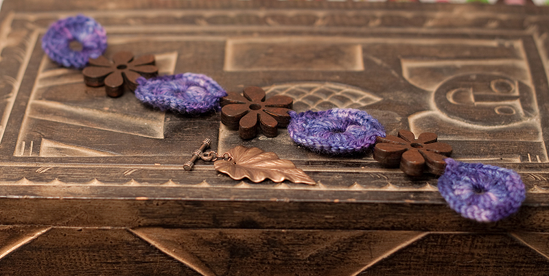 Make a few of these loops, get some fun wooden beads and use the bind off tail to thread through a few times.