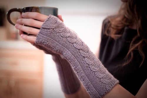 And last, Horseshoe cable fingerless gloves in soft grey bamboo.