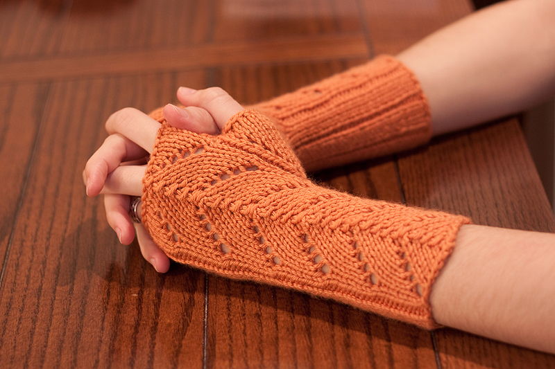 And finally pumpkin orange in horseshoe lace, knitted in Debbie Bliss Merino Aran.