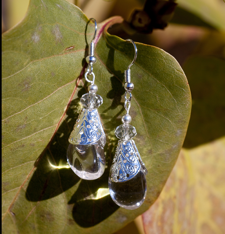 Two more pebbles of clear quartz and silver cones lend themselves to earrings.