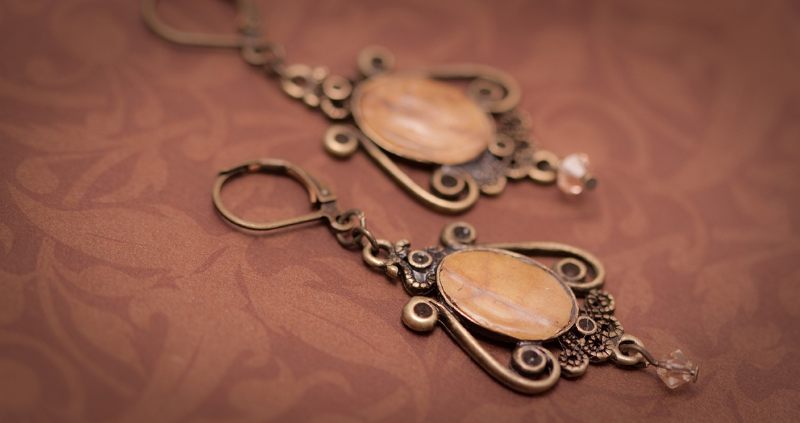 Here’s one of the first pieces to be completed – a set of dangly earrings made from maple leaves and finished with leaf charms.