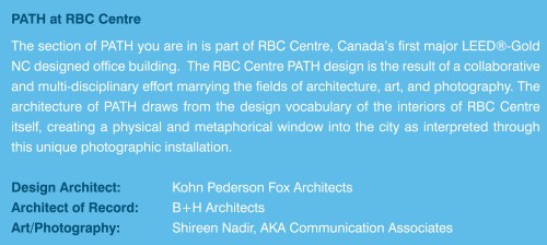I’m the art director for a design firm in downtown Toronto called AKA Communication Associates. We’re a small, hardworking team of very talented and multi-disciplinary designers. One of the things I do for AKA is photography, and about a year and a half ago we were assigned a project by Cadillac Fairview; redesigning a large section of PATH, Toronto’s underground walkway.