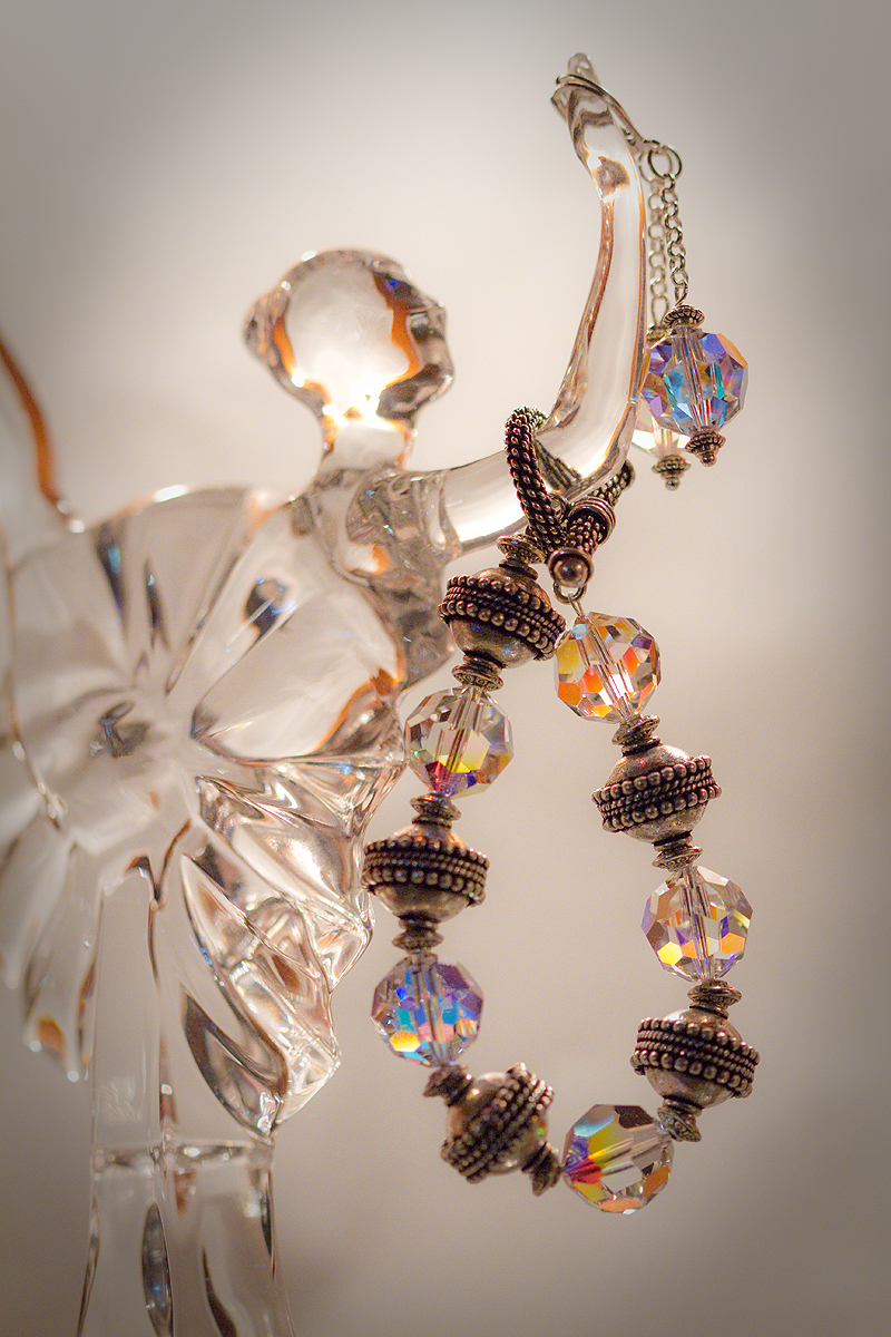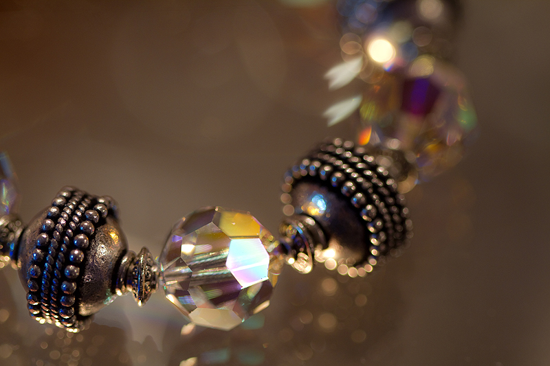 This weekend mom made a very cute bracelet, with super glittery large Aurora Swarovski beads.