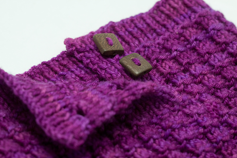 There’s a fun story of how we decided to make it purple – We wanted to find out her favourite colour without giving it away, so I put out an open call on facebook to a bunch of our mutual friends asking for everyone’s favourite colours. After finding out hers was purple I knew what colour to make the cowl, and as a bonus, what colour to make everyone else’s Christmas bookmarks. Score!
