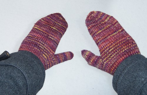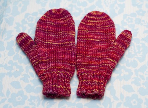 At last, I’ve managed my fear of DPNs. Every time I picked them up and tried something it felt hopeless, tangled and uncomfortable. Then about a week ago I said ‘this is it! I want mittens!’ and I picked up the DPNs and all at once they were super easy. I don’t even know what I was doing wrong before.