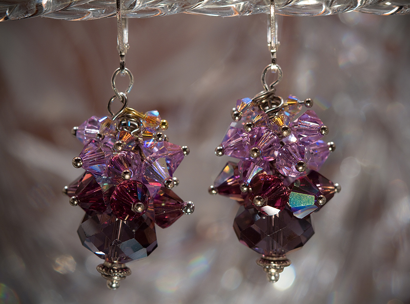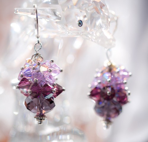 These adorable, bunchy little earrings were our main project. They’re made with 4 different sizes of Swarovski crystal, tiered to created these sparkly little beauties.