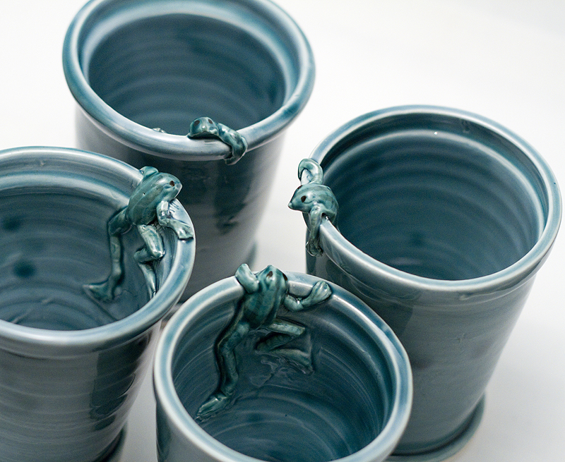 New yarn bowls – just of the kiln today =o) These are the finished froggie bowls from a few weeks ago – and they turned out adorable!