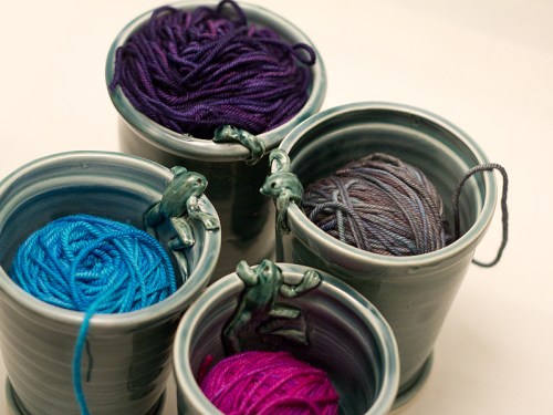 Many kind folks have inquired about buying my yarn bells and yarn bowls through my Etsy site – the reality of shipping pottery however, is that it tends to get pricey. I sell my work locally at the Purple Purl here in Toronto because I feel my customers get the best value that way (and not just because it’s my favourite yarn store!). If you don’t live in Toronto though, and would really love to have one please let me know, and I would be happy to get shipping quotes for you.