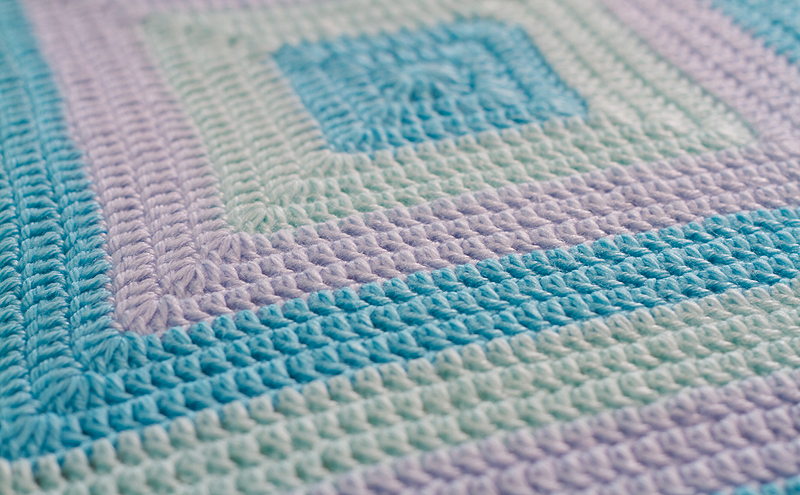 This is one of the many reasons why I love crochet. I started this blanket on Friday night, by Sunday night it was washed and laid out to dry. The blanket is about 24″ square – try that with knitting! While I adore knitting, crochet definitely has it’s moments and fast, beautiful projects like this one are a perfect example.