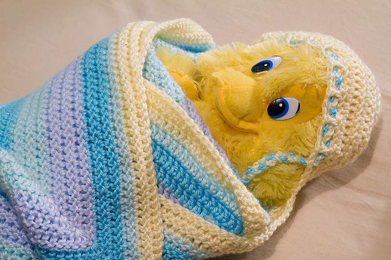 Alas, I have no model babies available, but I tried out my pattern on a stuffed toy and I think it’s going to work well. I can’t wait to see what the parents think!