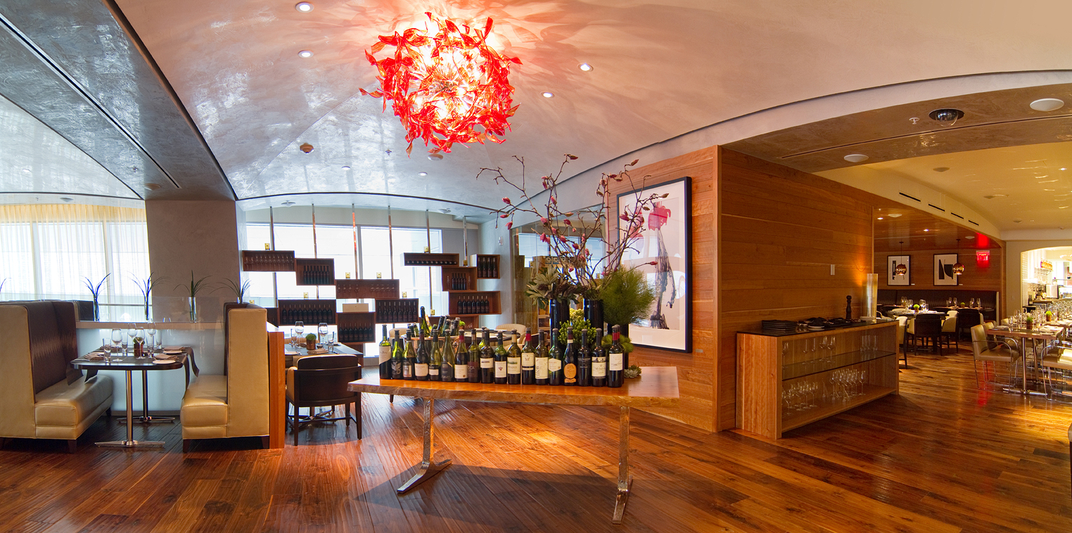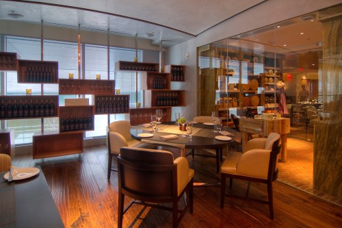 This is the upper lounge of the restaurant, Toca. Hidden behind this table is the cheese cave.