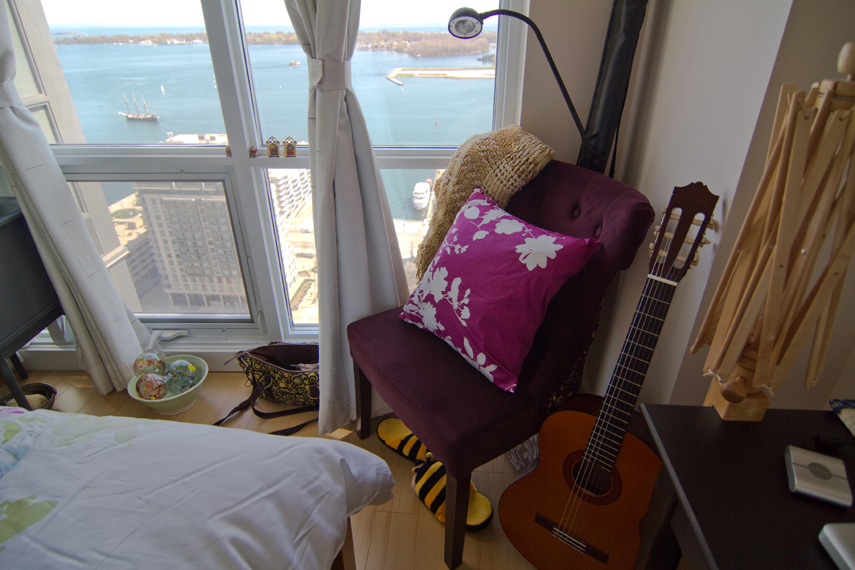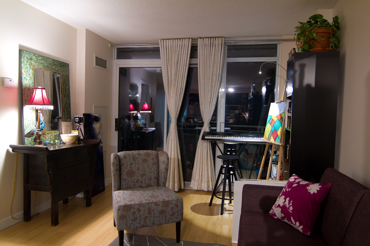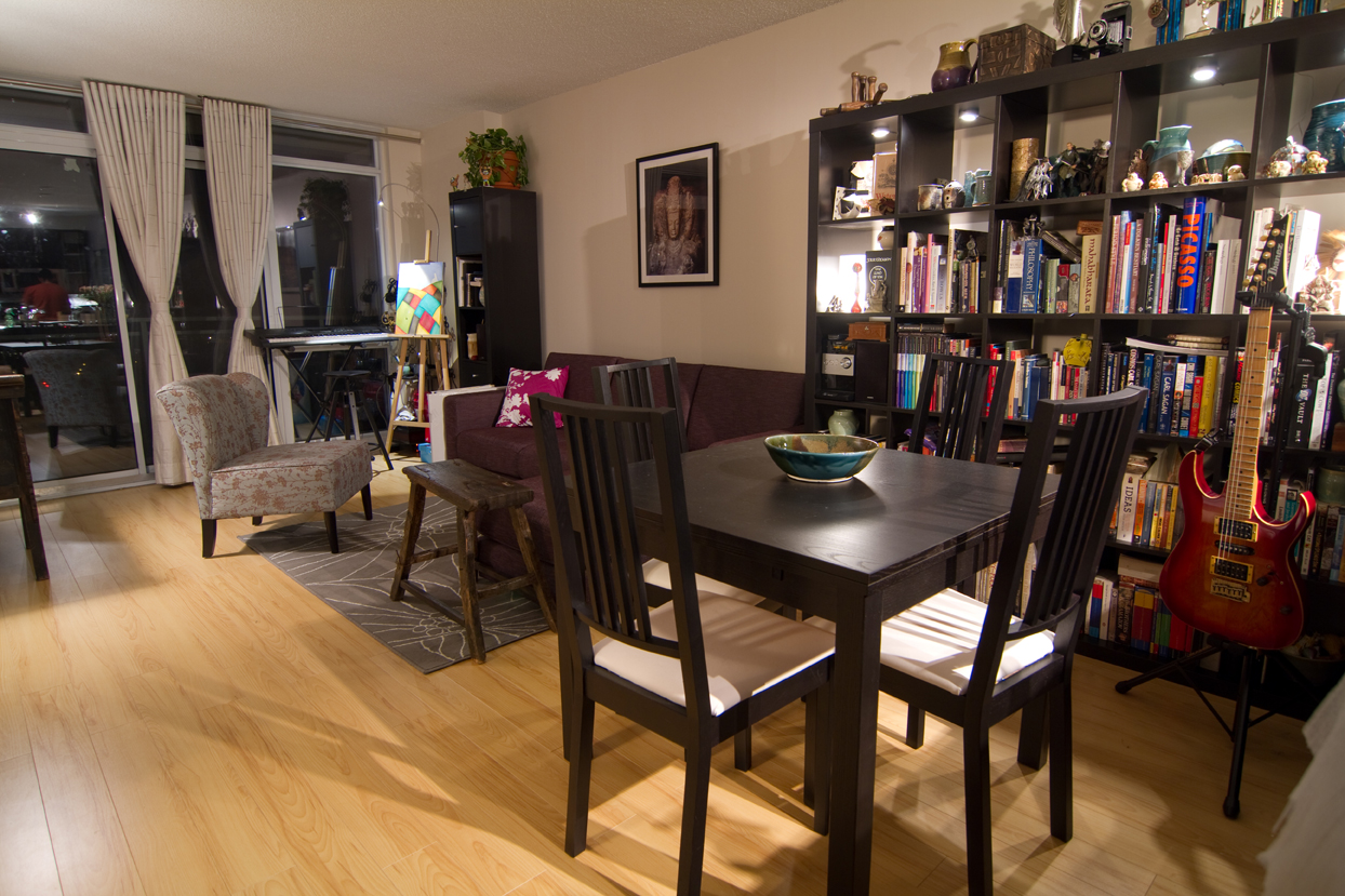 Aaand – the condo. I’m proud to say I designed it from scratch, almost everything is new and I did it for under $5000. It accomodates everything Tito and I love to do while still making a small condo feel calm, open and comfortable.