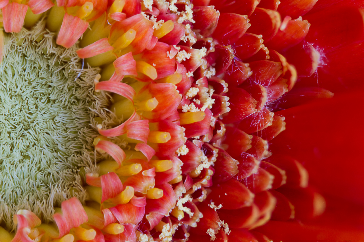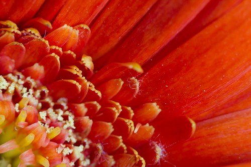 An ordinary gerber daisy becomes a fascinating landscape of texture and colour.