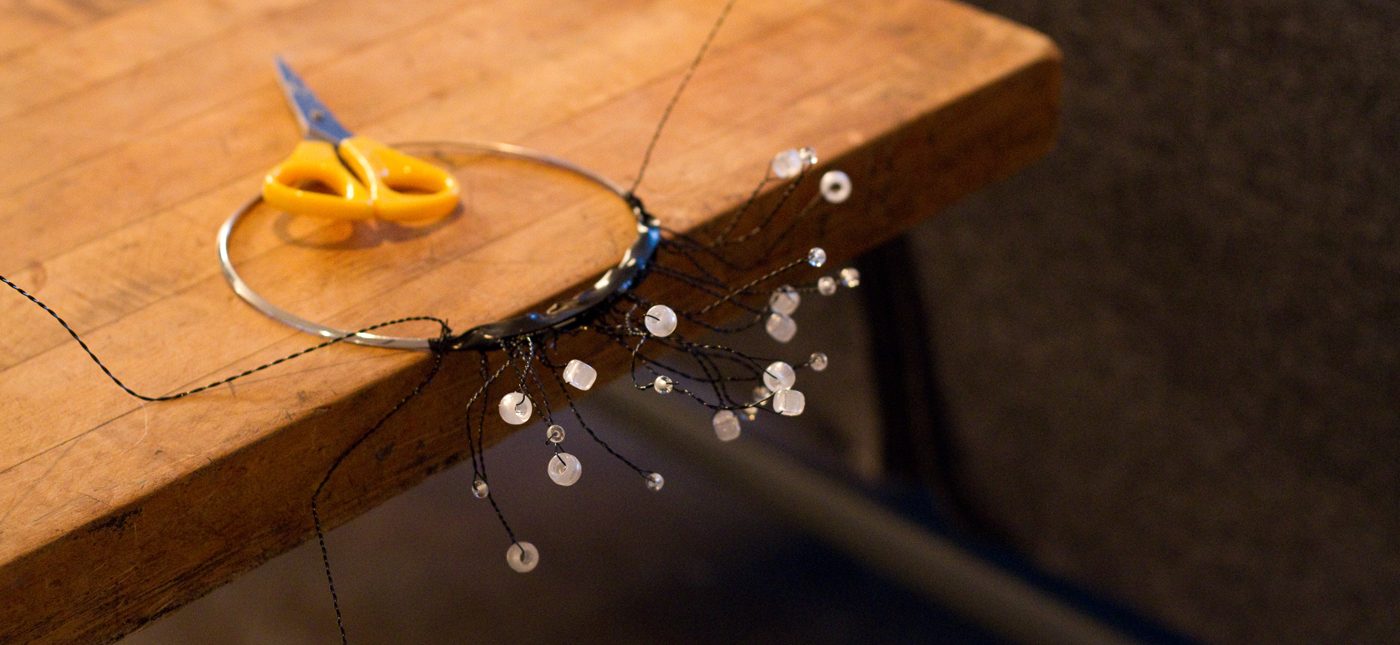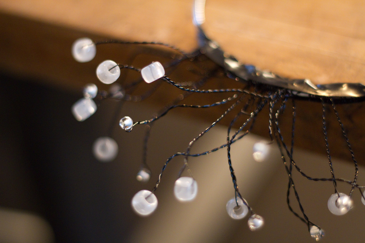 The intent was to use photo luminescent beads on black wire to create a cloud of floating dots of light. It was inspired by a photo I saw in a book of optical illusions when I was a kid.