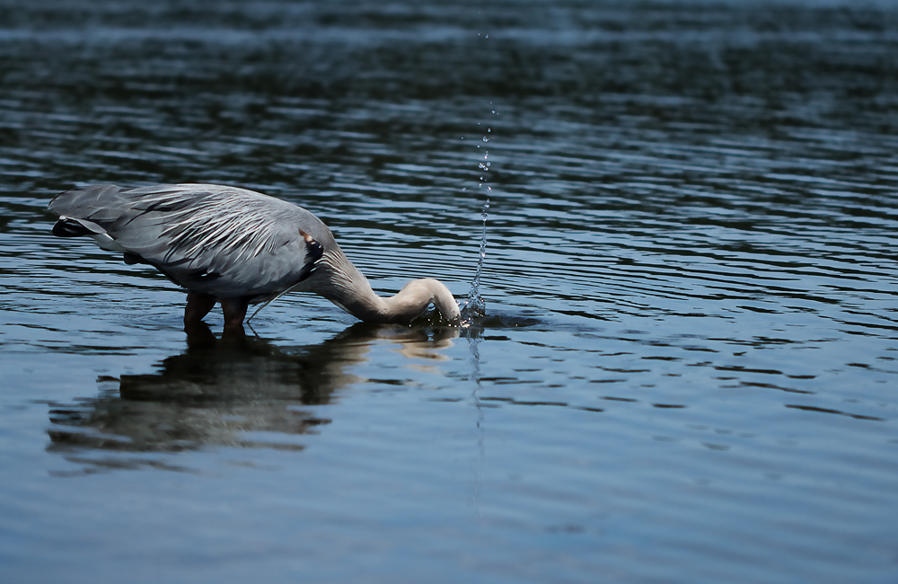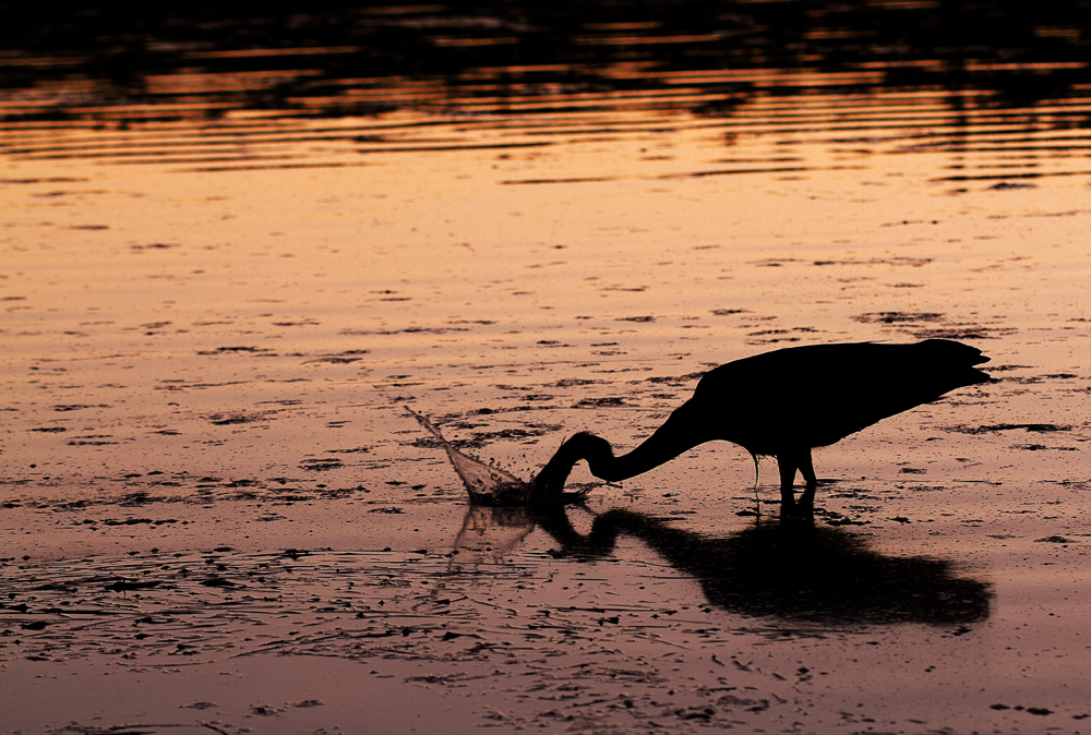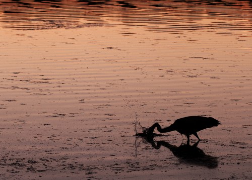 I love this high speed shot of a great blue heron fishing – the light was just right and I caught the droplets from his plunge.