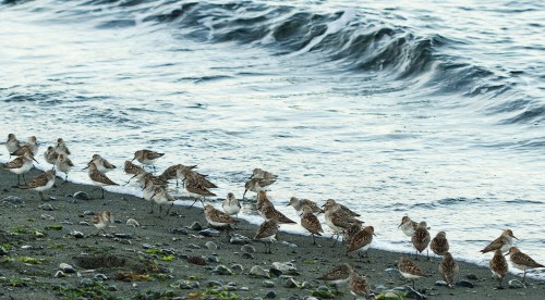 Check these cuties out – these are sandpipers hunting for small invertebrates to munch on by the shoreline.