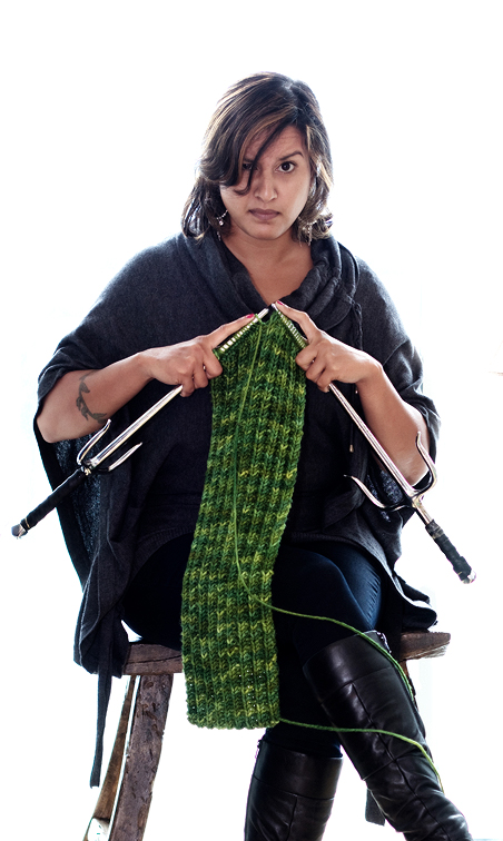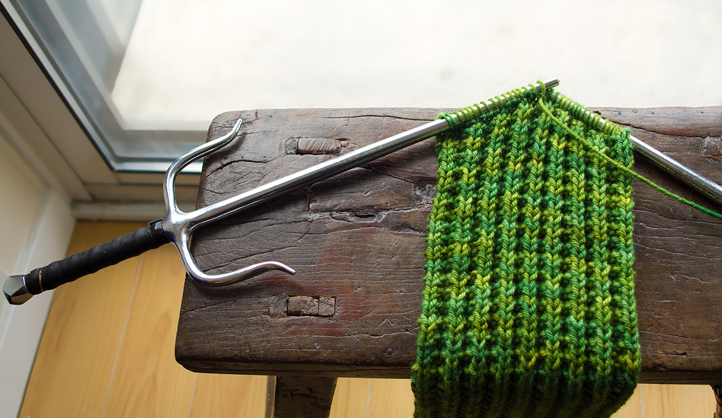 Before you ask – no I didn’t knit the cowl with my sais, they’re too heavy and taper besides so I’d never get an even stitch. However the shot was so goofy I couldn’t resist.