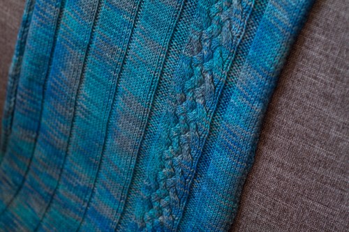 It was the perfect solution for 2 skeins of TFA Purple label cashmere yarn. I was lucky enough to get my hands on 2 of her one-of-a-kind skeins at the knitters frolic this year but if you’re looking to match what I’ve done there is a colourway called, appropriately enough, Atlanic, which would do the trick nicely.