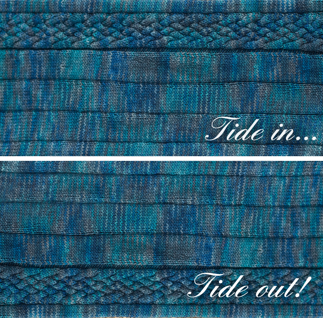 The pattern was inspired by the tides at the Bay of Fundy, as illustrated by my cheesy graphic: Go on and laugh, you know you want to.