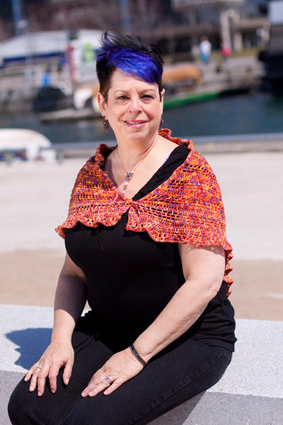 The shawl is worked up using 2 skeins of sock weight yarn. My shawl was done in TFA Blue label Grape, and Lisa’s in Ella Rae Lace Merino, in the whimsically named colourway #117.