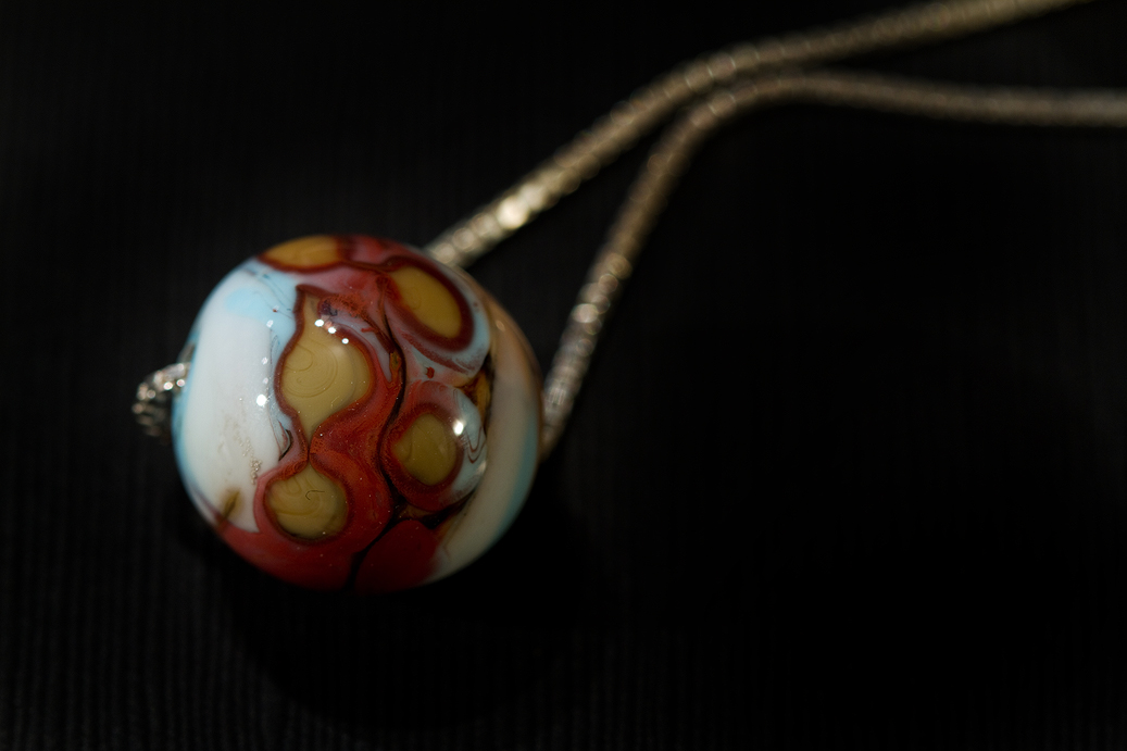 One of the beads was so lovely that I just strung it on a silver chain. It’s about 15mm wide, and it made a great pendant. It’s so satisfying to wear something you made from scratch.
