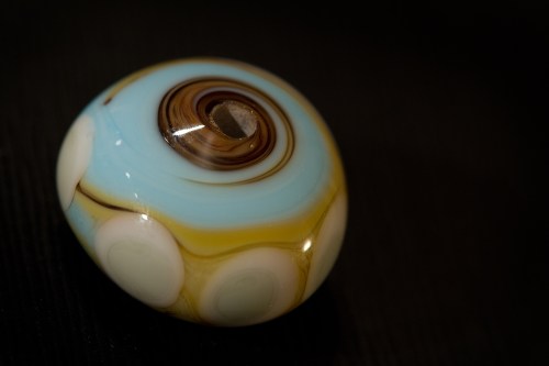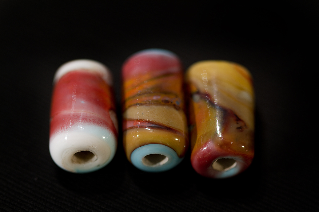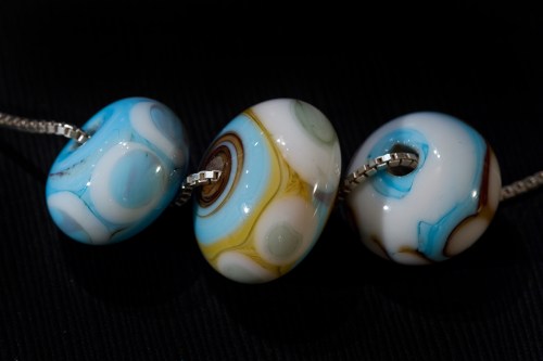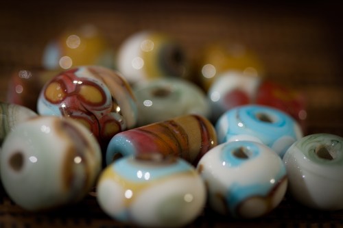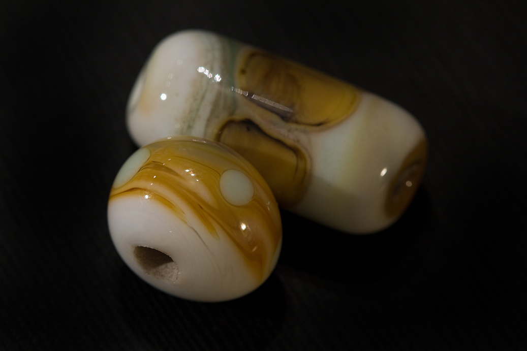I worked with only 5 colours all night trying to create beads that, above all, were reasonably round. Yes, that was my only goal. Round, with nice holes. It sounds weird, but I can’t think of any other way to put that. It’s just lousy when the glass grips the mandrel in such a way that you don’t get that nice, doughnut shaped centre.