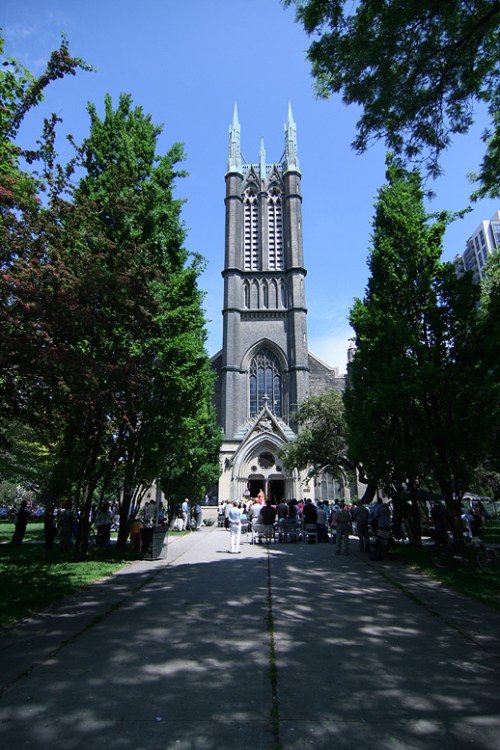 Tito and I were first up in this church 4 years ago. The church is a large neo-gothic style building at Queen and Church streets. The first construction was in 1872 but a fire in 1928 destroyed almost the entire building. The tower however, dates from the original structure. There are a total of 54 bells in the carillon, the earliest dating to 1922. The tower, though it predates the bells, was specifically designed to accommodate the weight of the carillon; over 44 thousand pounds.