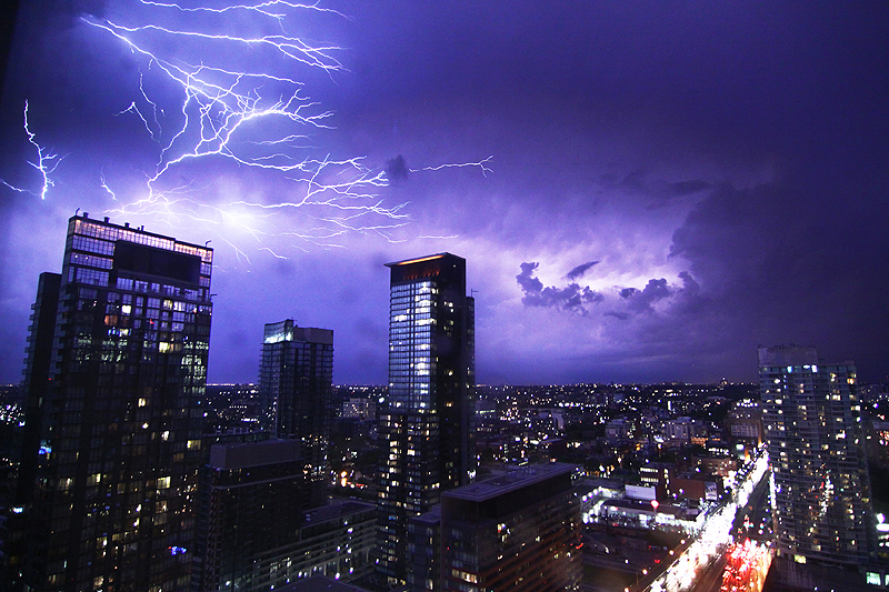 I feel obligated to say this bit – lightning can be dangerous. Don’t stand near hydro towers in a really big storm. Don’t be the only thing standing in a massive, empty field. Keep your camera dry. If it’s really humid out, pack your camera case with those silica gel packs you get in your shoebox – it will draw out the moisture when you put your camera away. Springtime brings great storms – good luck!