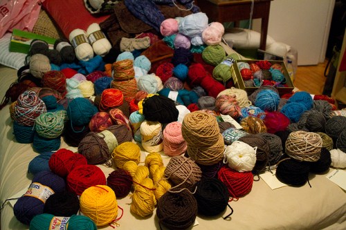 I’m doing it. I’m Purging the Stash. There is a ton of yarn here that predates my discovery of my one true love – hand dyed merino and alpaca blends. Lots of acrylic, wool, novelty yarns and other things I know I’ll never use. Lots of them are full skeins. I’m looking for a worthy home to donate the yarn to – if you’ve heard of something really worthwhile please post it in the comments!