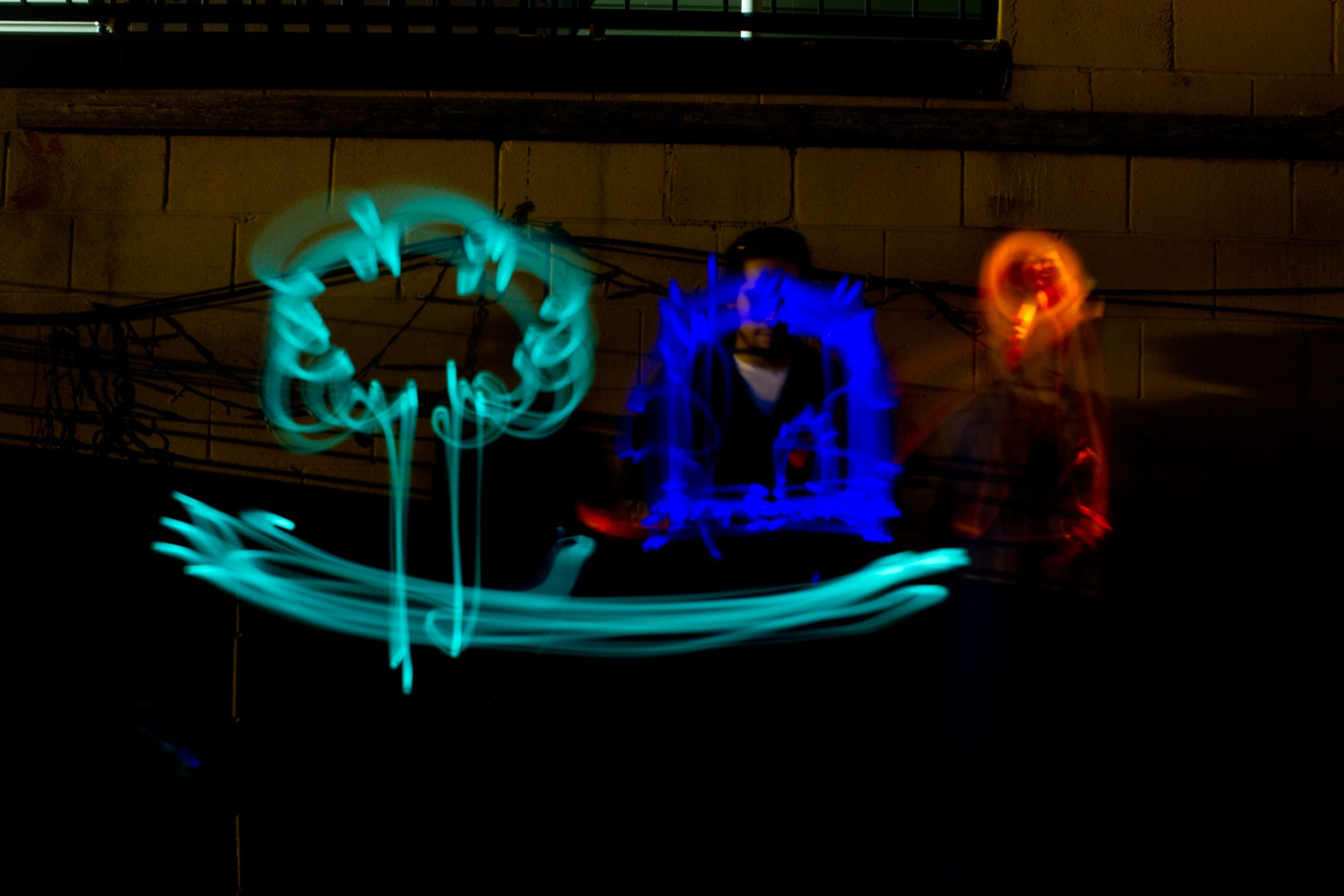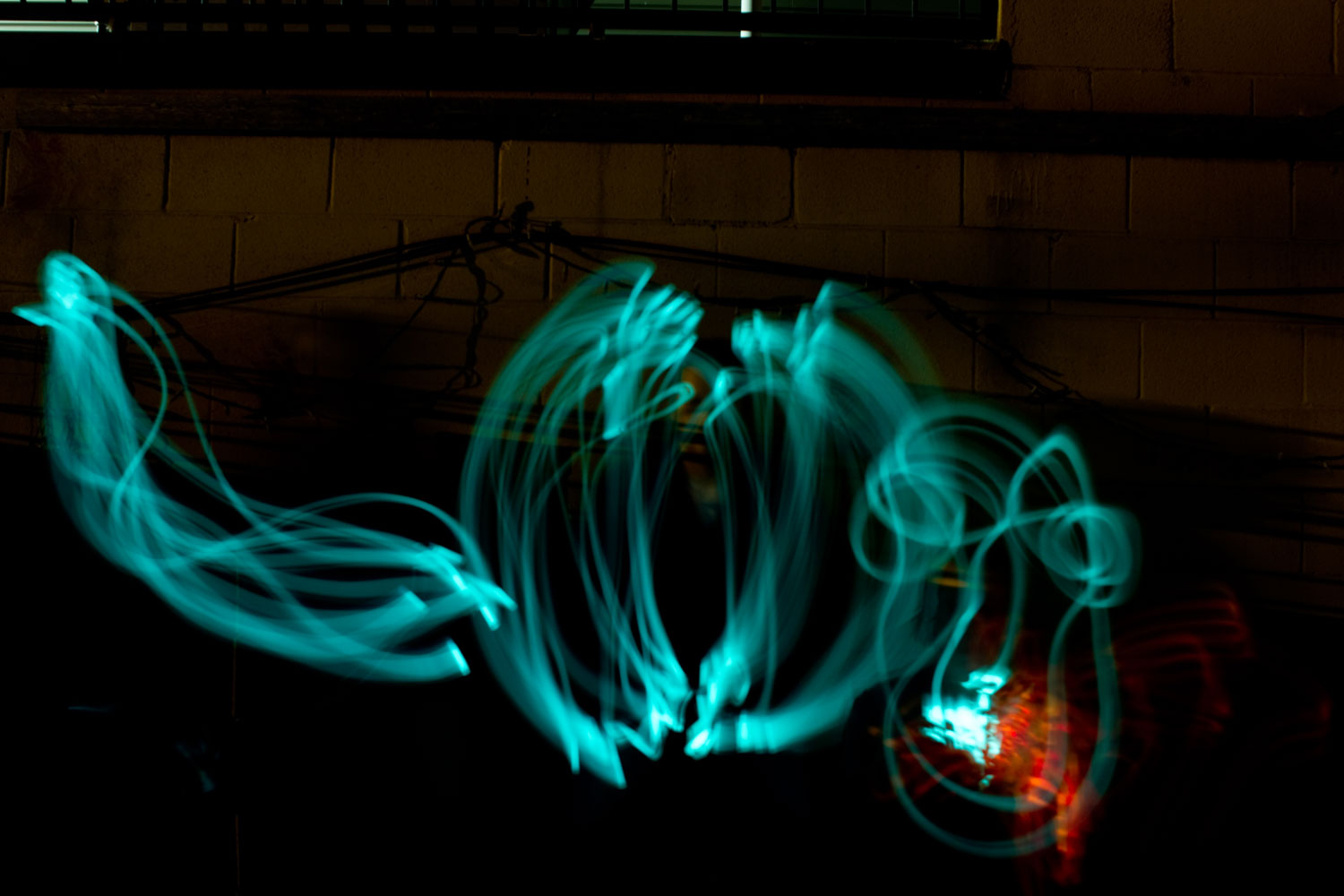 Last Friday night Tito and I were invited to our artist friends house for dinner and creativity! To add to the night I brought the camera and a collection of glow sticks, sparklers and bubble mix.