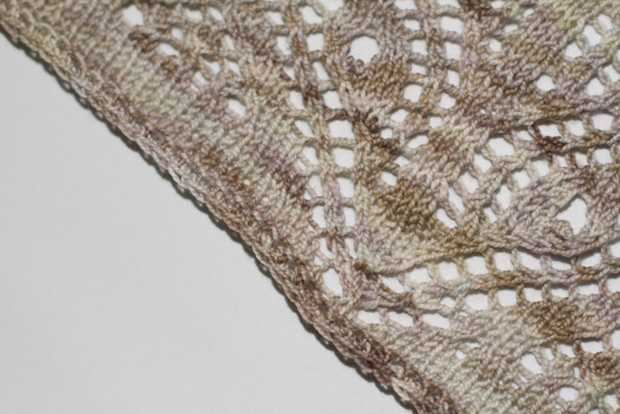 Best of all, it cost me nothing extra and I was able to work directly into a cast off piece. The beauty of crochet was that if it didn’t work I could have just pulled it out without damage to the shawl. I’m pretty happy with the results :)
