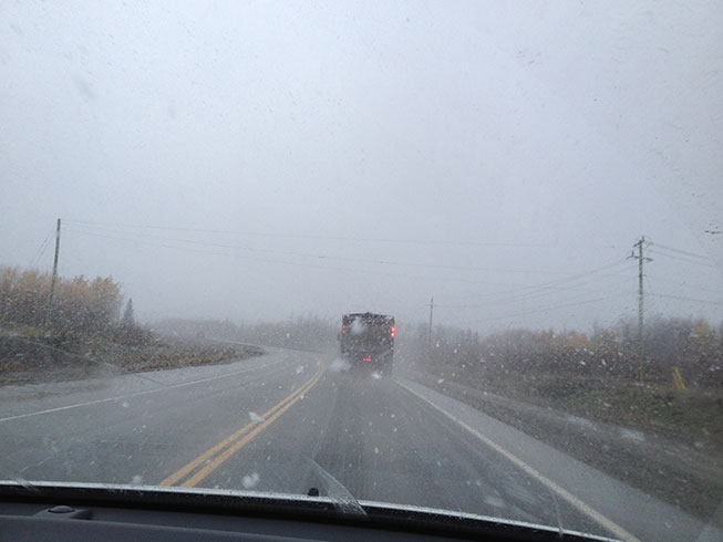 To that point in our trip, it had snowed, wet snowed and fluffy-but-it-melts-when-it-lands snowed but once in Timmins it began to capital S. Snow.