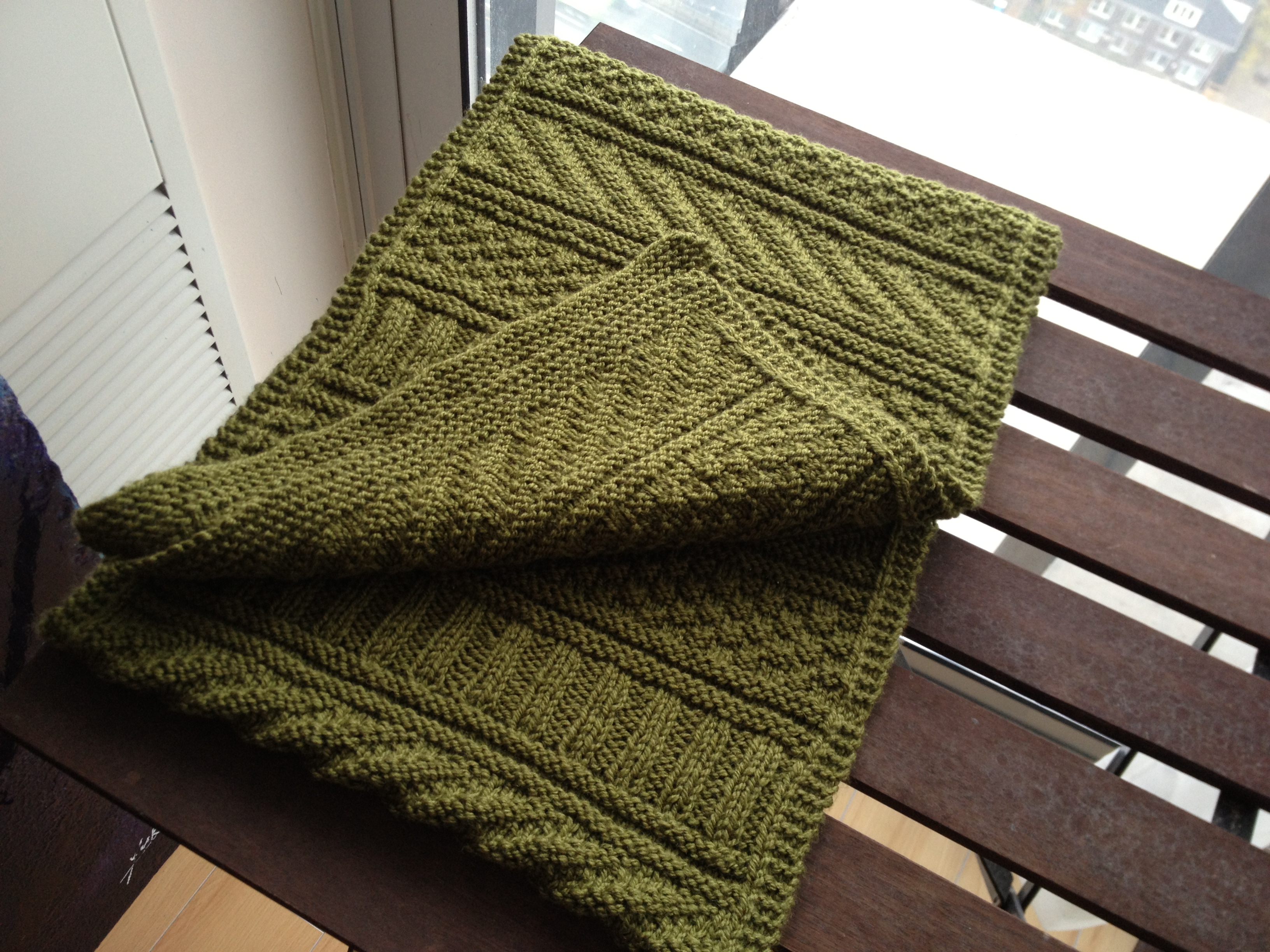 I knitted Jared Flood’s Guernsey Wrap for Tito. Looks nice, right? Good stitch definition, nice colour. It looks like it should have worked out, but alas, I’m not that happy with it. I’m going to be honest here and admit that I hate the yarn.