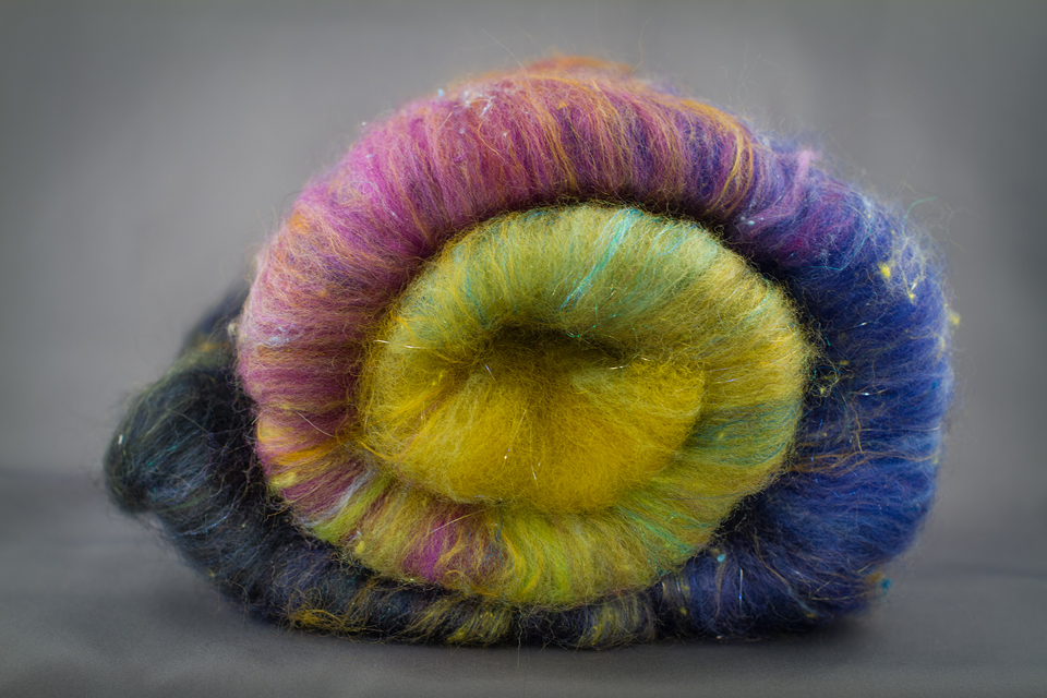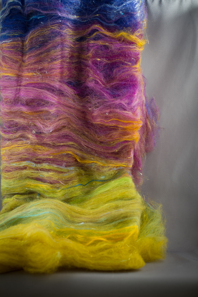 This bat is destined to become something lovely. I’ve asked my spinning instructor to help me spin it up, or possibly just to spin it for me so it doesn’t suffer from my junior spinning skills. I’m going to try and keep the colours and transitions intact just as they are and knit an aurora scarf. Then, when I finally make it to the arctic, I will WEAR that lovely scarf as I’m shooting. It will be perfect!
