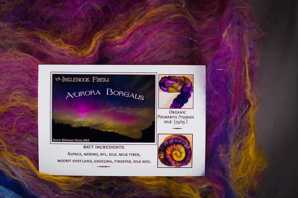 Inglenook Fibers is a hand dyed fiber studio located just outside of Boston, and it’s one of the many ways that the Sisters of the Holy Nativity Convent are totally self supporting through craft. A few weeks ago one of my pen pals there, Mother Macrina, wrote to me and asked if she could use this photo of the aurora Tito and I shot last fall as the inspiration for dying a bat of roving: