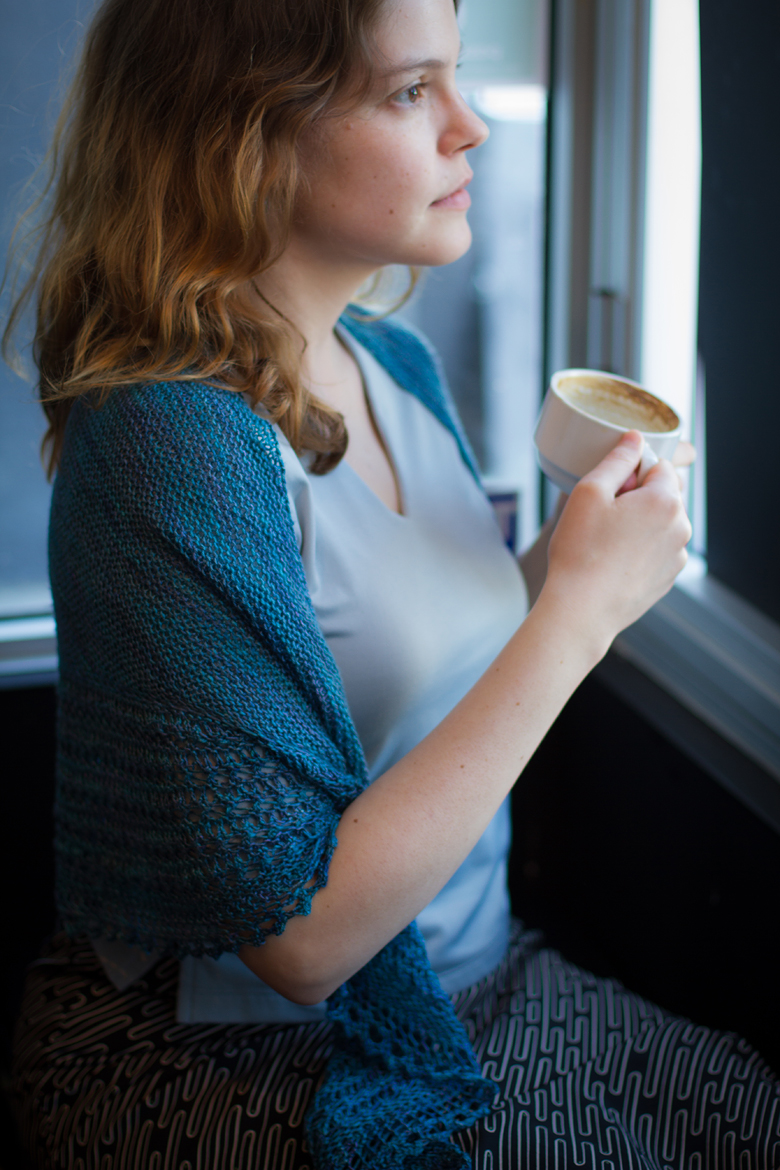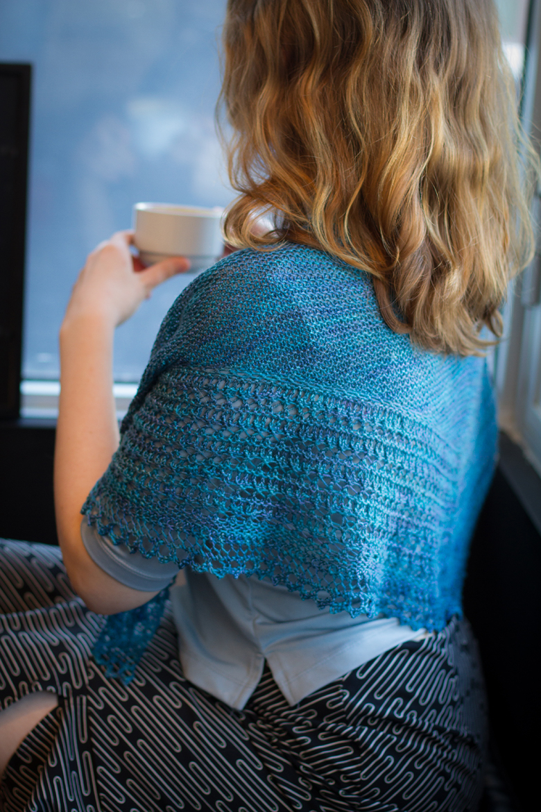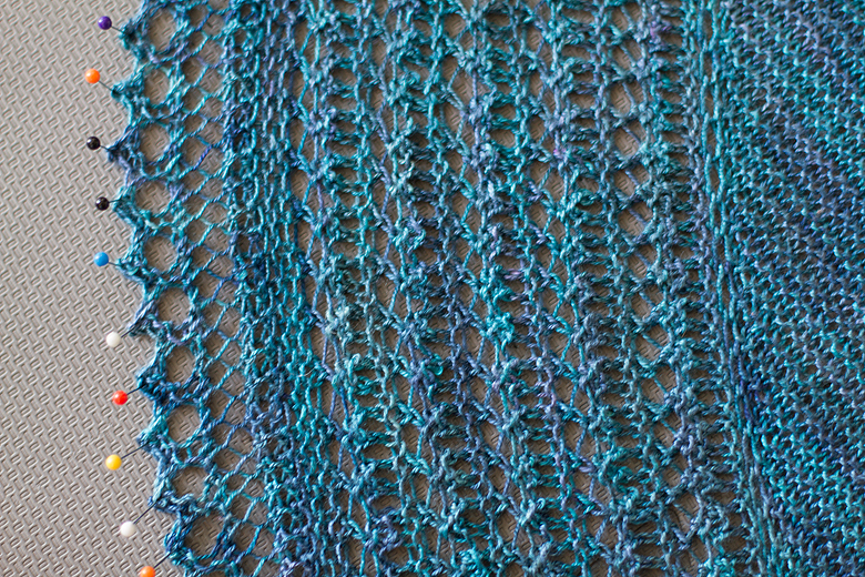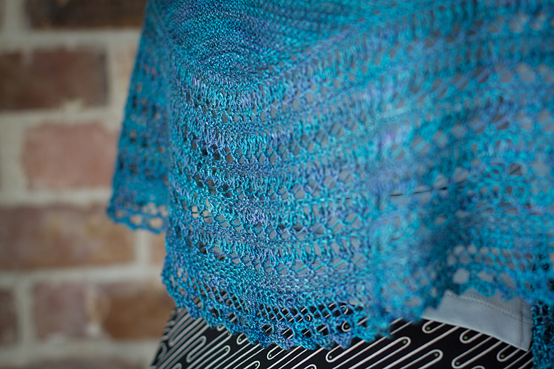 I hate it when you cast off a shawl and it’s so tiny, even after blocking, that it sits awkwardly on your shoulders like the funny little wings of newly hatched butterflies…but the pattern increases here resulted in a generously sized shawl.