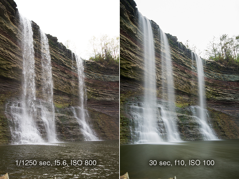 After that I started playing with showing as much contrast as I could. In the 2 examples below you can see that exposure length, ISO and aperture have all been altered to show a nice contrast between the short and long shutter shots.