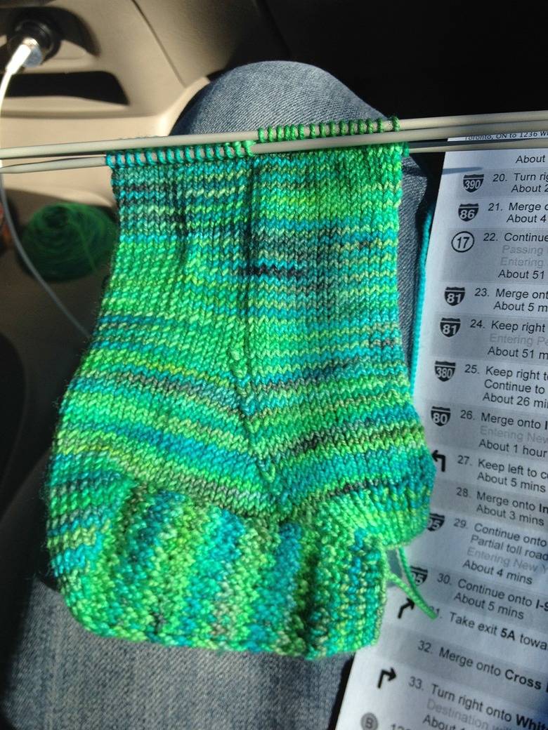 So we drove to NYC on the weekend (more on that later) and I was looking for a good knitting project to take up the time. Tito had just received his first pair of socks and he was lovin’ em.