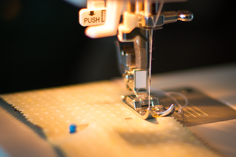 She got me started on something called a ‘jelly roll‘ – pre-cut strips of cotton in complimentary patterns that you can just roll out and sew together without much thought or planning. She also gave me some basic advice about joining, pinning, consistency and ironing, and invited me to come back with the finished piece to learn how to take it the rest of the way.