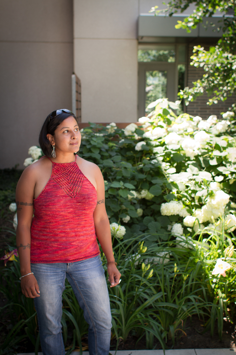 Nevermind that it calls for cotton. Nevermind that heavy merino is not what one should reach for in summer wear. I had to have this top, had to have it in the sunset, and loved it enough to knit my second ever clothing item. This will definitely see lots of summer wear.