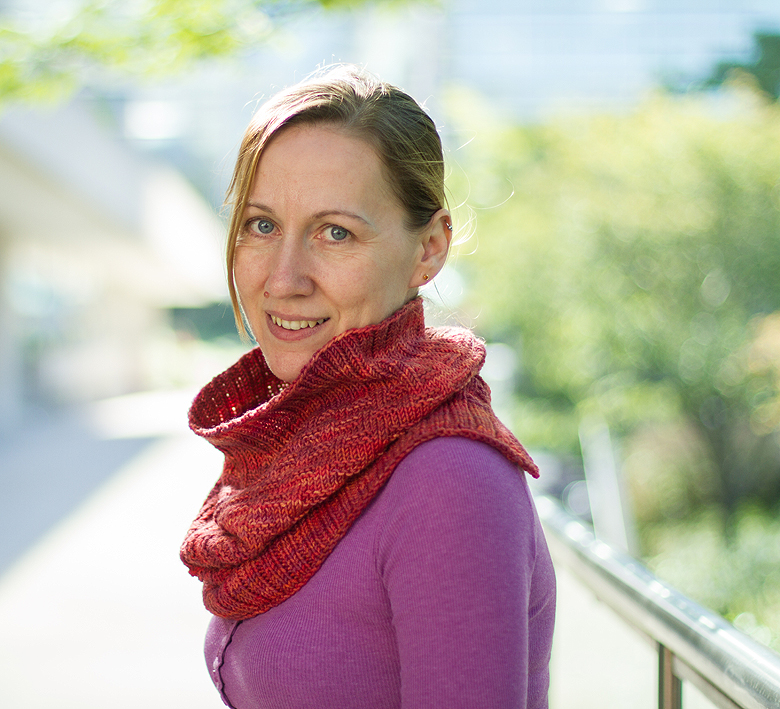 I had a few design goals for this cowl. I wanted it to be versatile – warm in the winter and loose for the transitional seasons. I wanted to fit flatteringly around the neck, and not feel like I was wearing a lot of fabric that draped in the front, but didn’t actually cover my chest. Finally, I wanted it to sit well under a jacket, without a ton of fabric bulking up the back of the neck.