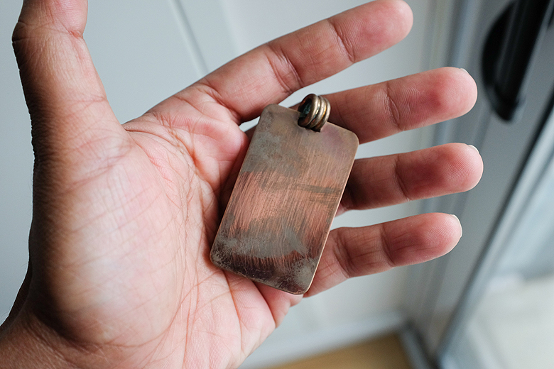 The copper bezel has had a patina added by hand to darken it and give it more of a steampunk look. The resin cured to a perfect, glossy shine – it’s perfection!