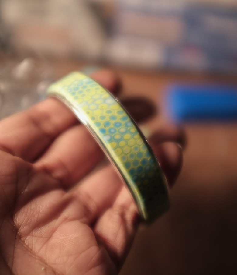 I have not done it justice in these photos, but it’s definitely the best polymer clay piece I’ve done so far and I’ll be getting more of these channel bangles for the slew of ideas that came to me overnight!