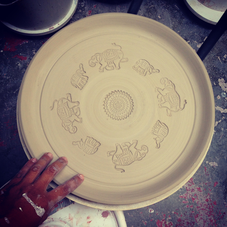 Another goodie out of the kiln, the elephant plate! Other than the fact that I would use another technique for more even glazing, I love this one :)