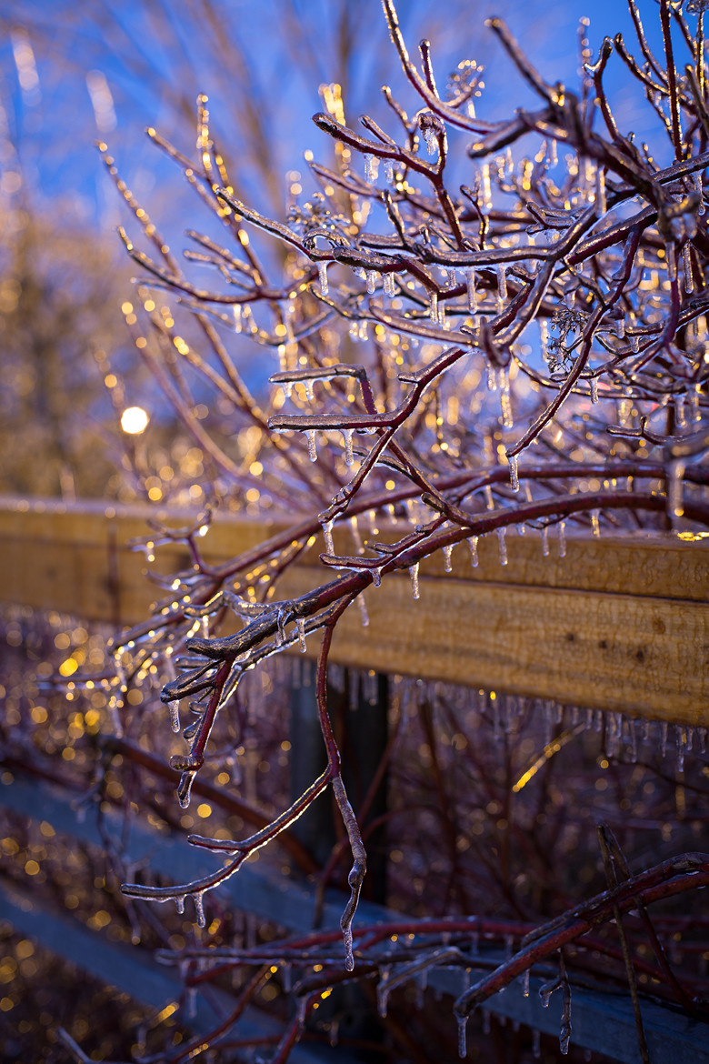 Yesterday I woke up thinking ‘I’m going to break the cycle. I’m going to stay in and kick this cold’. But then I saw the result of the ice storm and I couldn’t keep myself in. I went out again at night to get the blue hour/streetlight effect. I got sick again… but it was totally worth it ;)