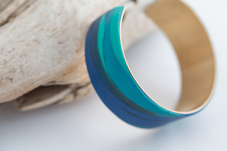 Here is another polymer clay cuff, this time inspired by that great goal of mine, the Northern Lights. Not the aurora as I’ve always seen them–as a diffuse glow coming up from the horizon line, but the full and bright overhead aurora that you can get in Fairbanks, or Tromsø. Someday I’ll get there!