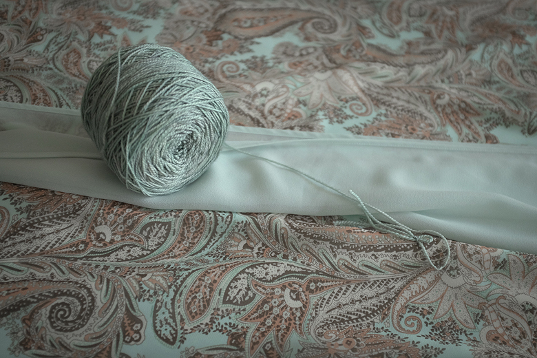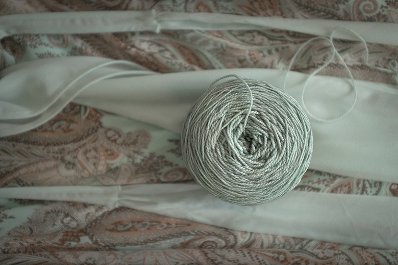 I decided that I would knit myself something fabulous to wear with it, and I wanted to use up 2 skeins of Mad Tosh sock in a colour called ‘cerulean’ that I bought from Eweknit at last years frolic. The problem was that the dye lots didn’t quite match. They did match the dress beautifully though, and I was determined to use them.