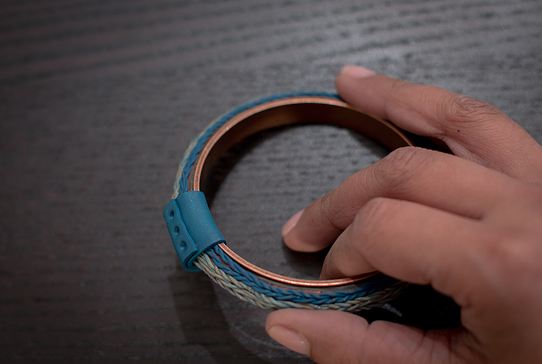Step 8 – I took a length that was about 1.5 times the circumference of the bangle, and doubled it.