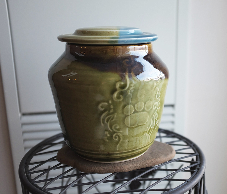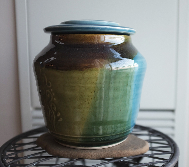 Casper was a lab-hound mix that a friend of mine adopted about 12 years ago. I still remember the day he brought him home–Casper was a big, goofy puppy, all limbs. He was a gentle and sweet-natured dog all his life. When he finally had to leave us last autumn I knew I wanted to make Casper a special urn for his ashes.
