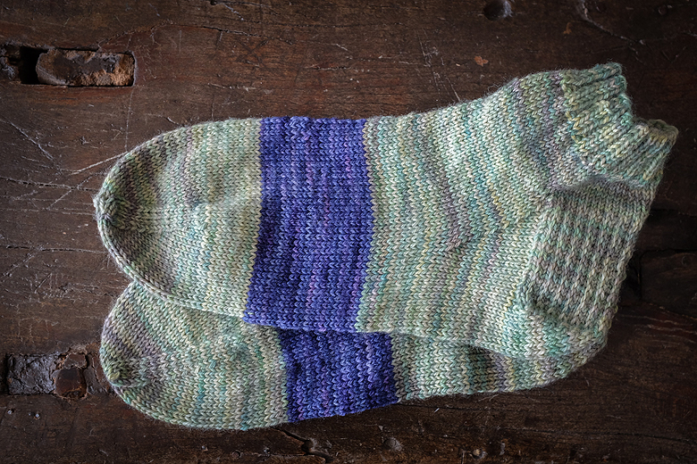 A few months ago I hinted to my friend Rayna that I love knitted socks, but never have time to make myself some. It hardly qualifies as hinting, I suppose, since I went on to hint that I loved them ankle-high, in variegated yarns, that I was a size 6 and that, therefore, one skein of koigu oughta do it.